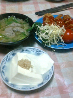 温豆腐とつみれ汁とカキフライ
